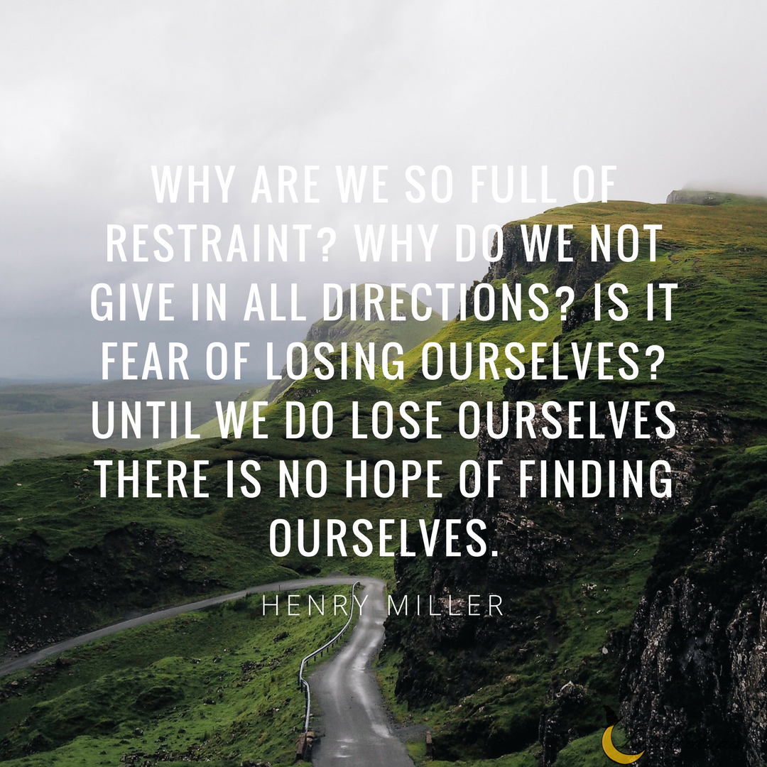 “Why are we so full of restraint? Why do we not give in all directions? Is it fear of losing ourselves? Until we do lose ourselves there is no hope of finding ourselves.” – Henry Miller
