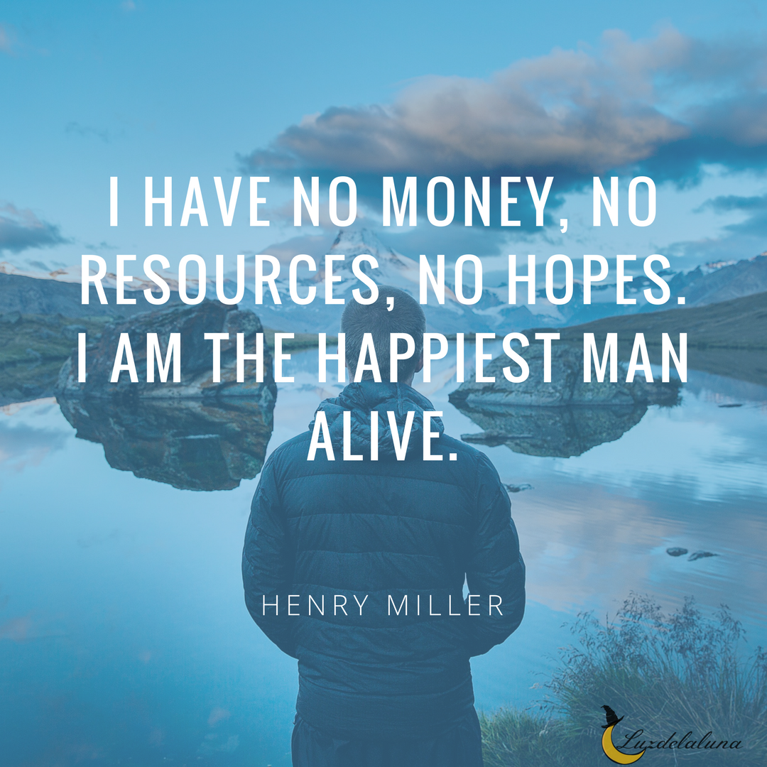 “I have no money, no resources, no hopes. I am the happiest man alive.” – Henry Miller